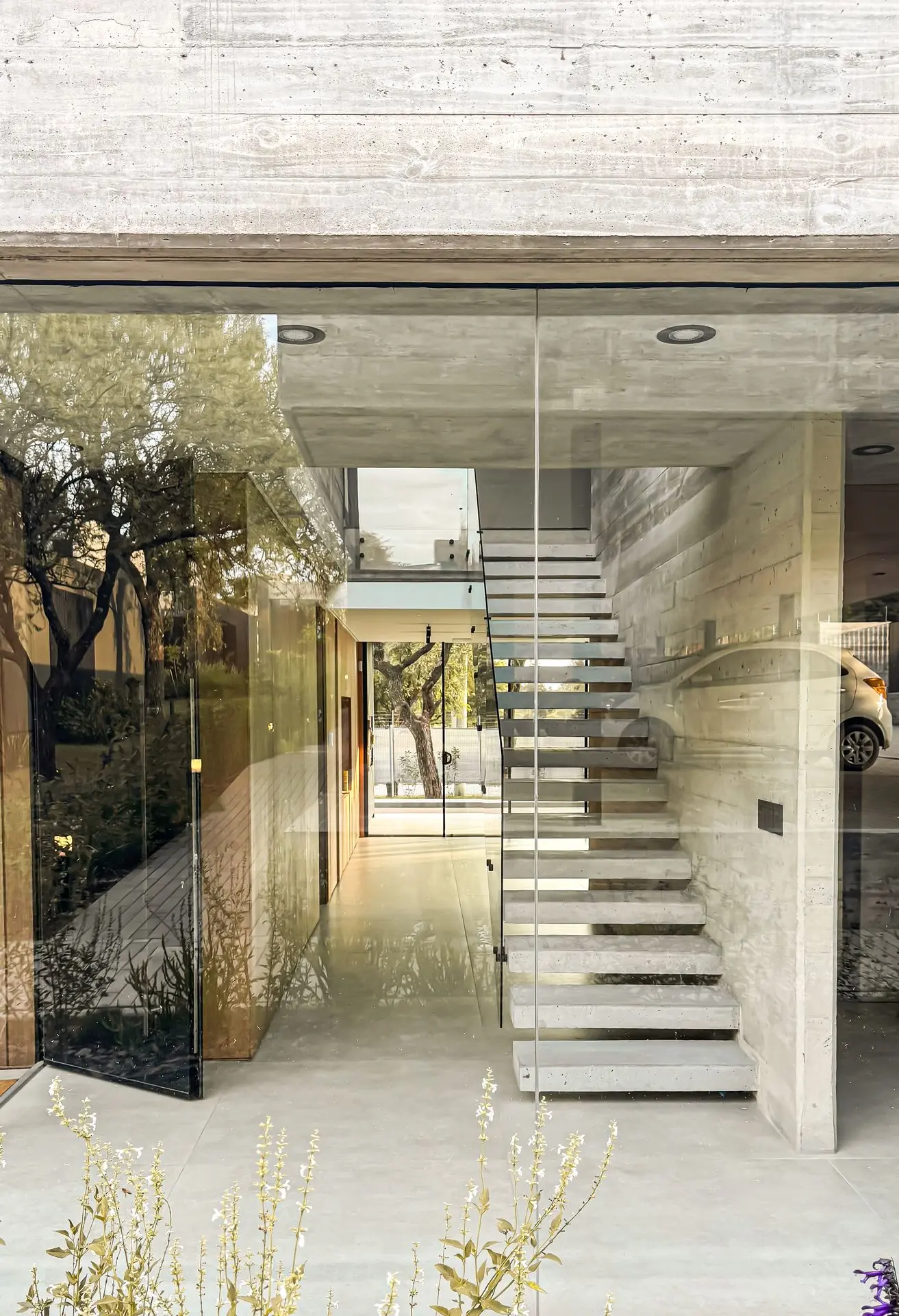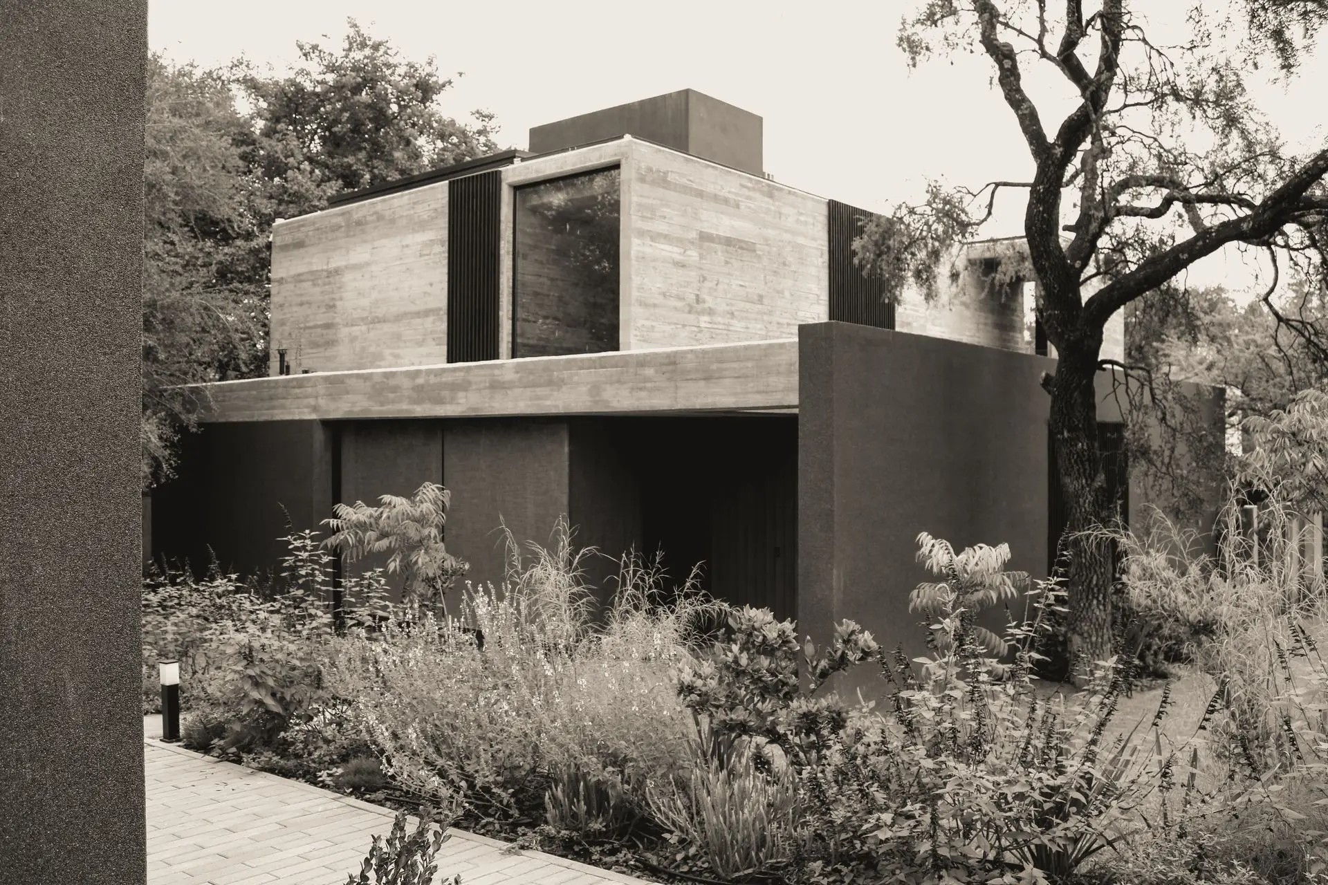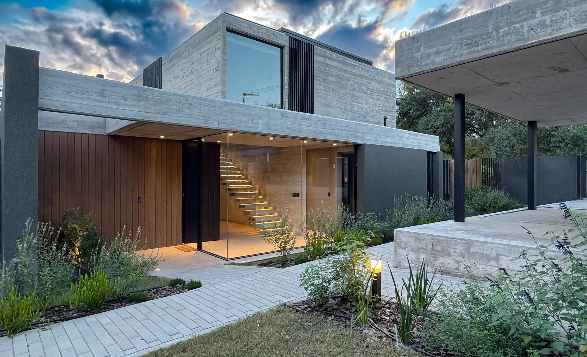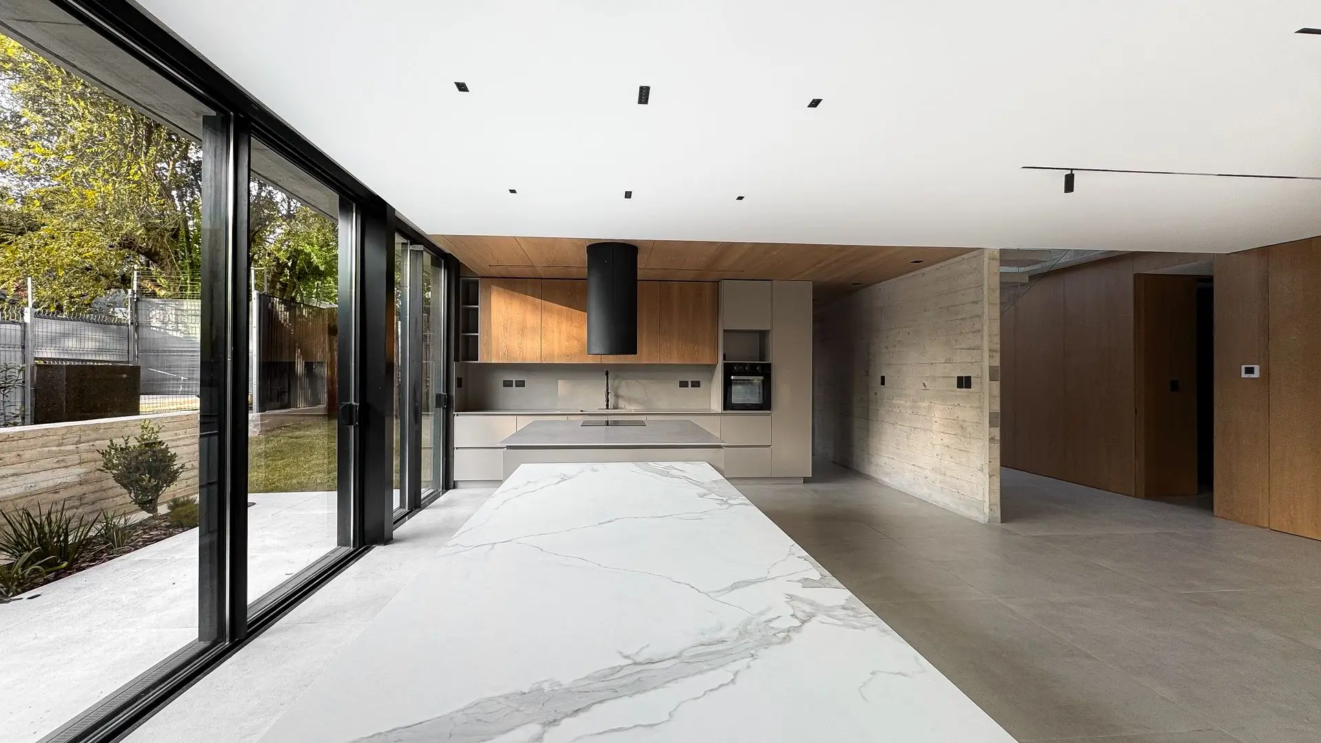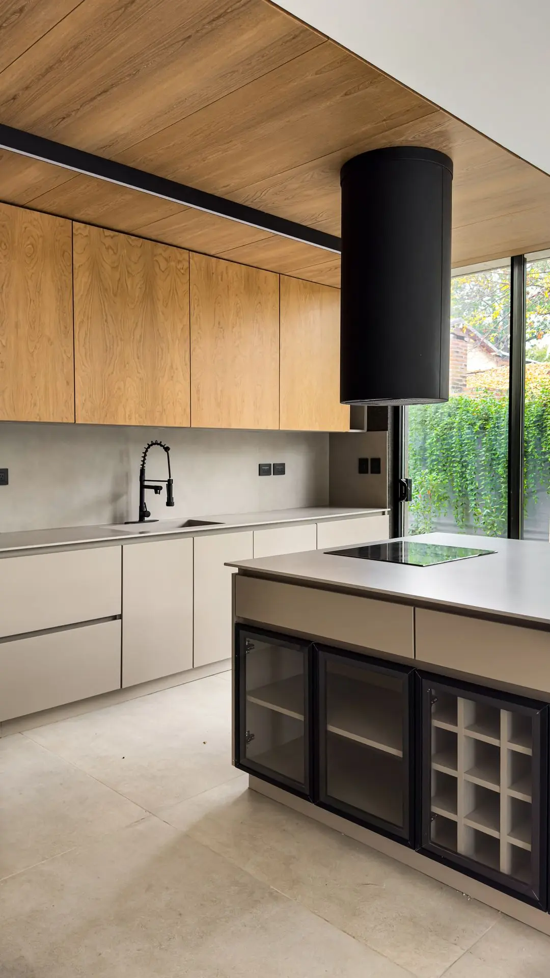 Los materiales utilizados fueron Gris Arcilla y Enchapado de madera natural de Goiabao Tostado, es un enchapado que se fabrica artesanalmente a pedido, el lustre fue extra-mate.